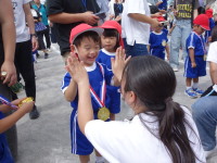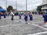 かけっこではゴールを目指して全力で走り、お遊戯では、音楽に合わせて楽しく踊り、